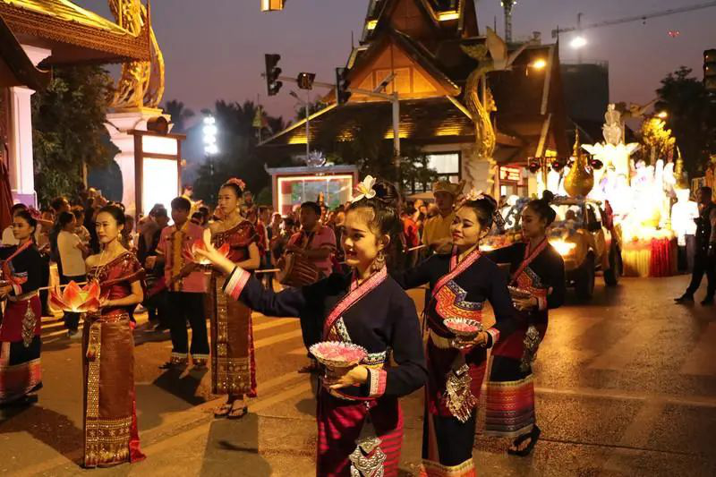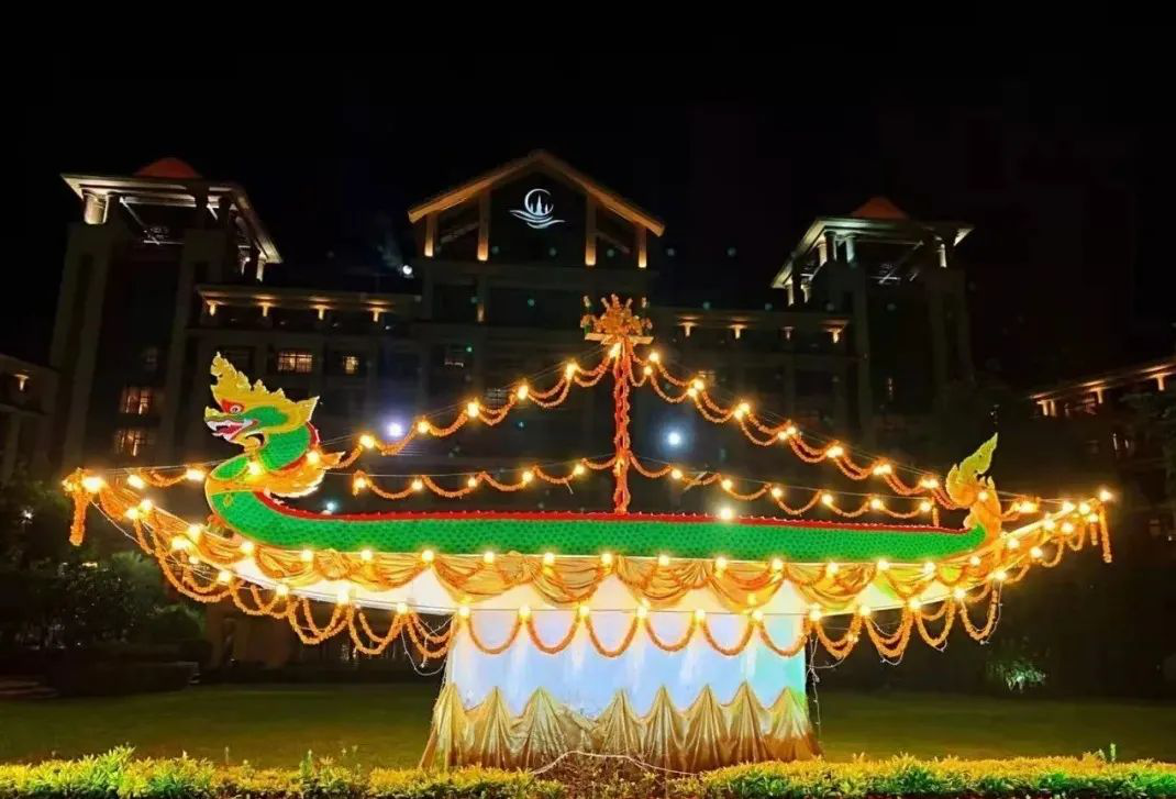 我更喜欢称呼它出夏节,出夏即为秋,正好对应时节。13日这天的出夏节,老挝各个地方的民众都会举行各种庆祝活动,点花灯、放河灯、赛龙舟、放烟花等等,万象更是盛况空前。
