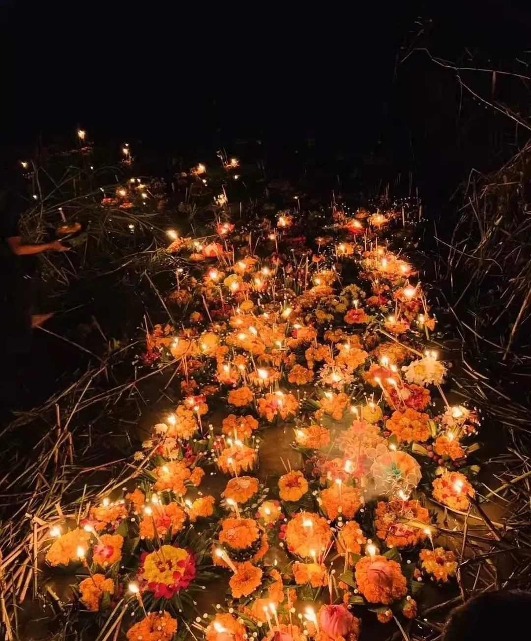 到了夜晚华灯初上,出夏节最美的场景才展现出来。大街小巷,河里岸边无数荧荧烛光汇成万千灯海,身着传统服饰,画着精致妆容的老挝人民手捧花灯开始了他们的祈福。循着湄公河水位下降,河摊上松软肥沃的土地曾给予老挝馈赠,作为老挝人民的 “圣河”,出夏节这天人们会用香蕉叶、香烛、小饰品、菊花等花卉装饰成河灯,祭拜河神。